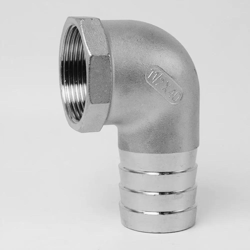 90 გრადუსიანი ქალის ძაფის იდაყვის მორგება:აქვს მდედრობითი ძაფი ერთ ბოლოზე და ეკლიანი შლანგი მეორეზე, შექმნილია მამრობითი ხრახნიანი კომპონენტების დასაკავშირებლად.